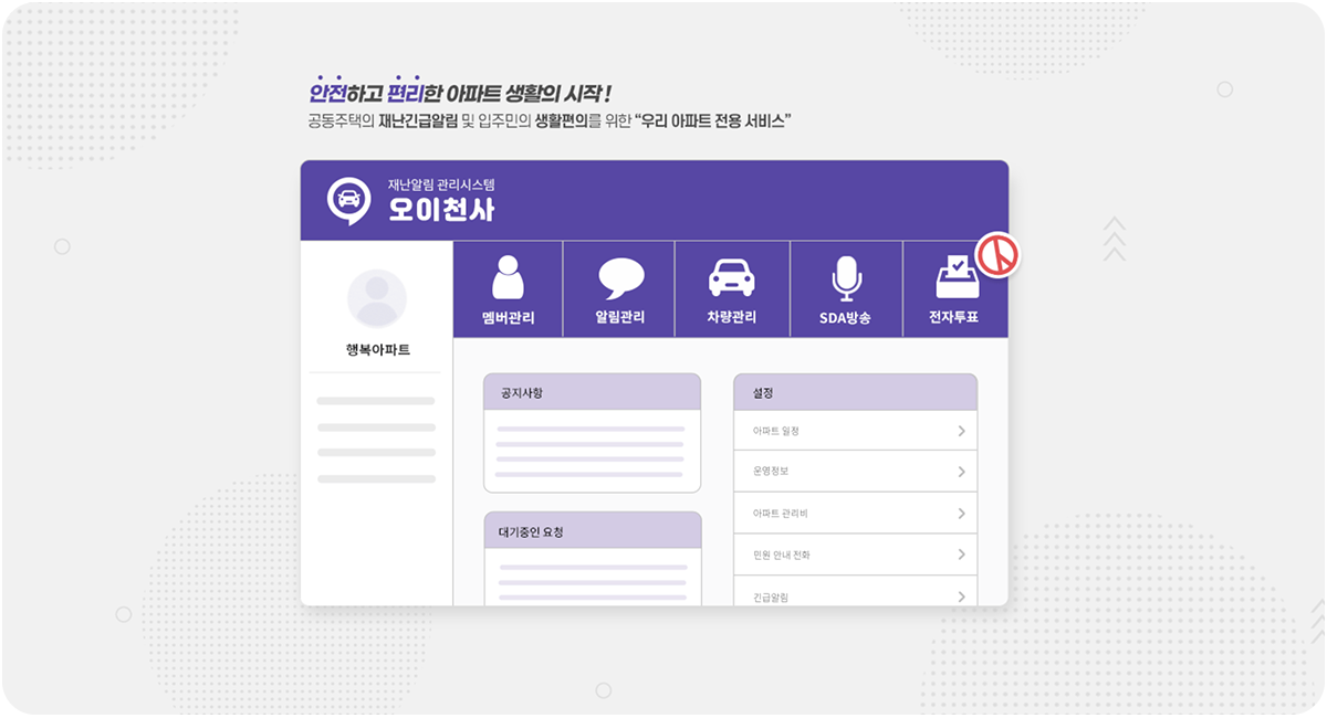 특히 높은 초기 투자비가 필요한 안전 솔루션을 더 많은 아파트 단지에 보급할 수 있도록 (1)렌탈/구독 상품 설계, (2)렌탈/구독 관리 프로그램, (3)필요 자금조달까지 원스톱 통합솔루션을 제공합니다.